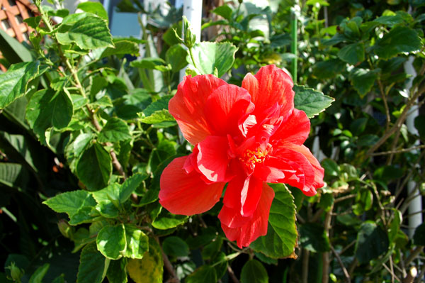 台風が接近した。海の側は潮が飛んでくる。植物の葉は潮で焼けてかれるのだ。だから水で流す。